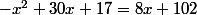 Non, pas besoin de la forme canonique. En fait, on te demande une valeur de x pour laquelle l'offre et la demande sont égales. Tu vas donc résoudre l'équation, -x^2+ 30x + 17 = 8x+102 , le membre de gauche traduisant la demande et celui de droite l'offre. Tu transforme donc un peu cette équation af...