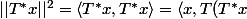 \rangle\leq ||x||\cdot ||T||\cdot ||T^*x||)