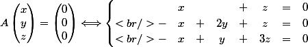 tous les vecteurs de coordonnées (x,y,z) définis sur la base canonique et qui vérifient ce système sont les éléments de ker f