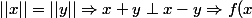 +f(y)\perp f(x)-f(y)\Rightarrow ||f(x)||=||f(y)||)