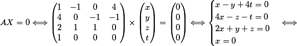 Je souhaite calculer le noyau de la matrice A ci-dessous.