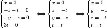 A est la matrice d'une application linéaire f. Donc Kerf(f)={0 } , les "{" sont là car Ker(f) est un ensemble qui ici contient un 'élément , le vecteur null.