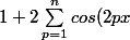 = 1 + \sum \limits_{p=1}^n e^{i2px} + e^{-i2px} = \frac{e^{ix}-e^{-ix}}{e^{ix}-e^{-ix}} +\sum \limits_{p=1}^n \frac{e^{ix}-e^{-ix}}{e^{ix}-e^{-ix}}(e^{i2px} + e^{-i2px}))