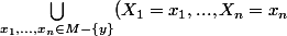 =P\(\bigcup_{x_1,...,x_n\in M-\{y\}}T_{x,y}=\infty\cap(X_1=x_1,..., X_n=x_n)\)\\ \qquad\qquad=\sum\limits_{x_1,...,x_n\in M-\{y\}}P\(T_{x,y}=\infty\cap(X_1=x_1,..., X_n=x_n)\))