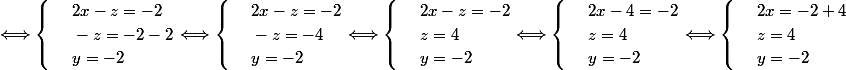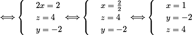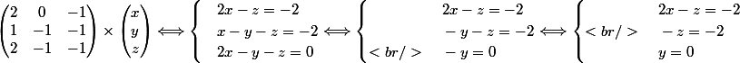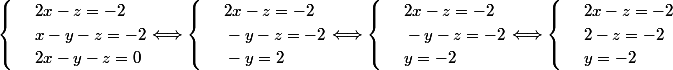 Dans le deuxième système la troisième équation est -y=2 (au lieu de 0)