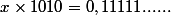 On vérifie facilement que 8x s'écrit en binaire : 0,11001100... , que 2x s'écrit 0,0011001100... donc 10x=8x+2x : 0,111111...=1 .