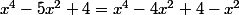 racines évidentes: x^2 = 1 ou x^2 = 4 donc quatre racines réelles 1,-1,2,-2