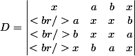 \begin{vmatrix}<br />1&1&1&1\\<br />a&x&x&b\\<br />b&x&x&a\\<br />x&b&a&x<br />\end{vmatrix})