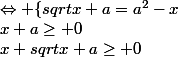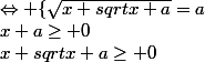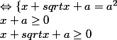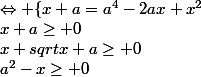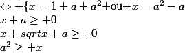 equivaut à ( rc(x+a) >=-x et x>=-a et x+a=(a²-x)²)