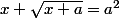 x+(a^4-a)=0\\x+a\ge 0\\x+sqrt{x+a}\ge 0\\a^2-x\ge 0})