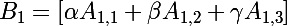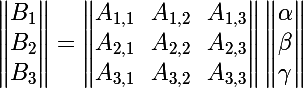 } = \alpha (A_{1,1}\vec{i}+A_{2,1}\vec{j}+A_{3,1}\vec{k}) +\beta (A_{1,2}\vec{i}+A_{2,2}\vec{j}+A_{3,2}\vec{k}) +\gamma (A_{1,3}\vec{i}+A_{2,3}\vec{j}+A_{3,3}\vec{k}))