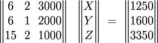 6X+2Y+3000Z et ça rapporte 10*125. Donc dit que ça coûte ce que ça rapporte revient à dire que :