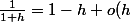 Faut croire que je suis pas doué, j'ai un peu de mal... Une fois que j'ai réécrit sin(1/1+h), j'obtiens :
