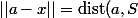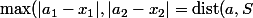 =\inf_{y\in S}\ ||y-a|| = \inf_{y\in S}\ \max(|y_1-a_1|,|y_2-a_2|)=\inf_{y\in S}\ \max(|y_1-a_1|,|a_2|))