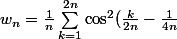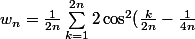 \[\frac{1}{2n}\Bigsum_{k=0}^{2n} cos(\frac{k}{2n})\])