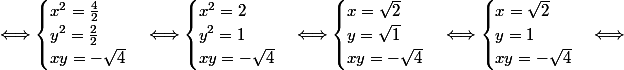 il y a une erreur dans le calcul de la racine carrée , le produit xy vaut -rac(2). sinon les résultats sont justes.