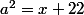 Lorsque j'ajoute 22 à x, j'obtiens un carré parfait.