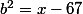 Lorsque je soustraits 67 à x j'obtiens un autre carré parfait.
