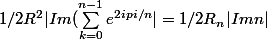 |=1/2|Im(\displaystyle \sum_{k=0}^{n-1}\bar{z_{k}}z_{k+1})|=<br />1/2|Im(\displaystyle \sum_{k=0}^{n-1}R\bar{w^{k}}Rw^{k+1})|=1/2R_{n}|Im(\displaystyle \sum_{k=0}^{n-1}\|...?...|)