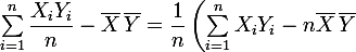 = \left(\dfrac1n\sum_{i=1}^n X_iY_i\right)- \bar X\,\bar Y\;.)