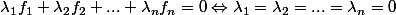 en prenant les valeurs en 1,x,x^2,...,x^(n-1) on obtient un système de van der monde en les alpha i qui admet pour unique solution 0