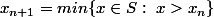 Et qu'en est il des ensemble S qui sont dénombrables et qui n'ont pas de min ? Exemple