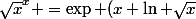 \\<br />{x^\sqrt{x} =\exp (\sqrt{x} \ln x))
