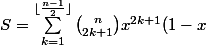 ^{n-(2k+1)}=(1-x)^n\sum_{k=1}^{\lfloor \frac {n-1} {2} \rfloor} {n \choose 2k+1} X^{2k+1}\)