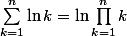 , on utilise la propriété du logarithme : ln(ab) = ln a + ln b, et aussi n = n ln e pour écrire :