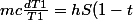m c (dT1(t)/dt) = h S (T1(t) - T2(t))