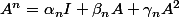 Une idée générale pourrait être la suivante : grâce à cette relation remarquer que toutes les puissances de A sont en fait une somme de termes de A^2, de A et de I, pondérés par des coefficients entiers positifs :