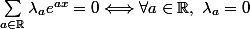 je cherche à savoir si la famille (x->e^ax) avec a élément des réels est une famille linéairement indépendante ou pas . comment faire?
