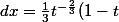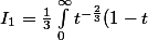 ^{-\frac{1}{3}}dt=\frac{1}{3}B(\frac{1}{3},\frac{2}{3})=\frac{1}{3}\frac{\Gamma(\frac{1}{3})\Gamma( \frac{2}{3})}{\Gamma(1)}=\frac{1}{3}\frac{\pi}{sin \pi /3}=\frac{2\pi}{3\sqrt{3}})