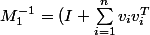 ^{-1} = (M_2 + v_1 v_1^T)^{-1} = M_2^{-1} - \frac{M_2^{-1} v_1 v_1^T M_2^{-1}}{ 1 + v_1 M_2^{-1} v_1^T})