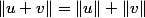 Si u et v ne sont pas colinéaires l'inégalité est stricte: je veux dire qu'on a ||u+v||<||u||+||v||.