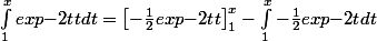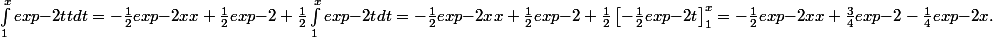 =\left[ -\frac{1}{2}exp{-2t}(t^2-1) \right]_1^x - \int_1^x -\frac{1}{2}exp{-2t}2tdt)