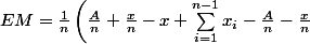 = \frac1{n}\left(\frac{A}{n} +\frac{x}{n}-x + A -\frac{n-1}{n} A - \frac{n-1}{n} x\right)= -2 x\frac{n-1}{n^2}+\frac{ 2 A}{n^2})