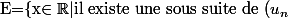 Quelqu'un pourrait m'expliquer comment trouver cet ensemble E? Puisque à priori trouver le sup et l'inf de cet ensemble ne devrait pas être trop compliqué.