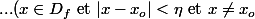 Aprés, ce qui est embètant avec la deuxième définition, c'est que pour avoir le droit de calculer la limite en xo d'une fonction définie sur un domaine Df, ç'est plus compliqué qu'avec la première définition : dire que xo est dans l'adhérence de Df ne suffit plus (on ne peut pas calculer la limite "épointé" en un point isolé de Df...)