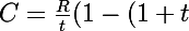 Formule liant le capital C, la mensualité (ou annuité, ou...) R, le nombre de périodes n et le taux t (par période), d'un prêt.