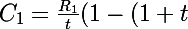 ^{n_1} = \frac{R_2}{t}(1-(1+t)^{-n_2}))
