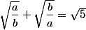 clamat29 a écrit:Soient a et b deux réels strictement positifs tels que √a/b+√b/a=√5.