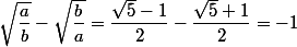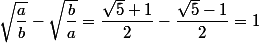 ^2=\left( \sqrt{\dfrac{a}{b}}+\sqrt{\dfrac{b}{a} \right)^2-4=5-4=1)