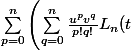 !}L_n(t)^{k}\right)\cr<br />=\sum_{p=0}^{n}\left( \sum_{k=0}^{n}{u^pv^{k-p}\over p!(k-p)!}L_n(t)^{k}\delta_{k>=p}\right)\cr)
