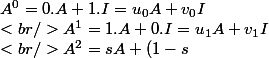 2/En déduire qu'il existe deux suites (Un)n et (Vn)n telles que A^n=un*A+vn*I. Préciser les relations de récurrence pour les deux suites.
