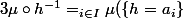 \bigcap \{ h = a_{i} \} ) = \mu ( \{ h = a_{i} \} ) . \delta_{a_{i}}(A))