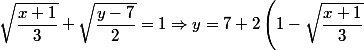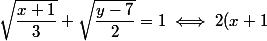 racine carre((x+1)/3)+racine carrée((y-7)/2)=1