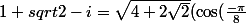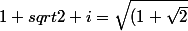 ^2+1} ( \frac{1+\sqrt2} { \sqrt{(1+\sqrt2)^2+1}} +\frac{i} {\sqrt{(1+\sqrt2)^2+1}}) = \sqrt{4+2\sqrt2}( \sqrt{ \frac{\sqrt2+1}{2 \sqrt2}}+i \sqrt{\frac{ \sqrt2-1}{2 \sqrt2}})=\sqrt{4+2\sqrt2}( \cos(\frac{\pi}{8})+\sin(\frac{\pi}{8})))