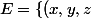 Par exemple (1,-1,0) est dans E, mais (1,-1,1) aussi, (1,-1,pi) aussi, bref, tous les (1,-1,z) avec z réel quelconque sont dans E.
