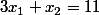 Donc j'aurai 3*x1+x2-9=20 soit 3*x1+ x2 =11